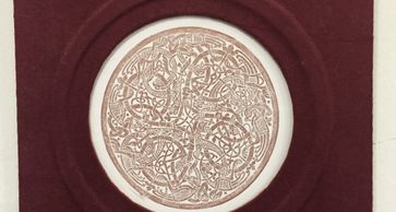 This is an example of taking the design within the artwork and creating a matching border thru the use of inlay circles of different sizes.